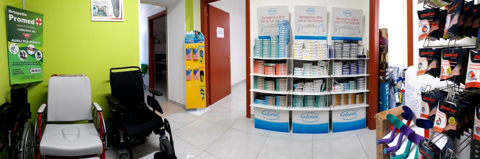 Da Promed trattiamo anche la produzione e la fornitura di prodotti ortopedici, in convenzione con l'ASL di Lecce. Ci occupiamo principalmente di rivendita di articoli del settore come, per esempio, calzature anatomiche e altri ausili per affrontare la vita di tutti i giorni anche in condizioni problematiche. Offriamo servizio di noleggio di ausili per disabili, di attrezzature per la riabilitazione e per trattamenti elettromedicali quali la magnetoterapia.